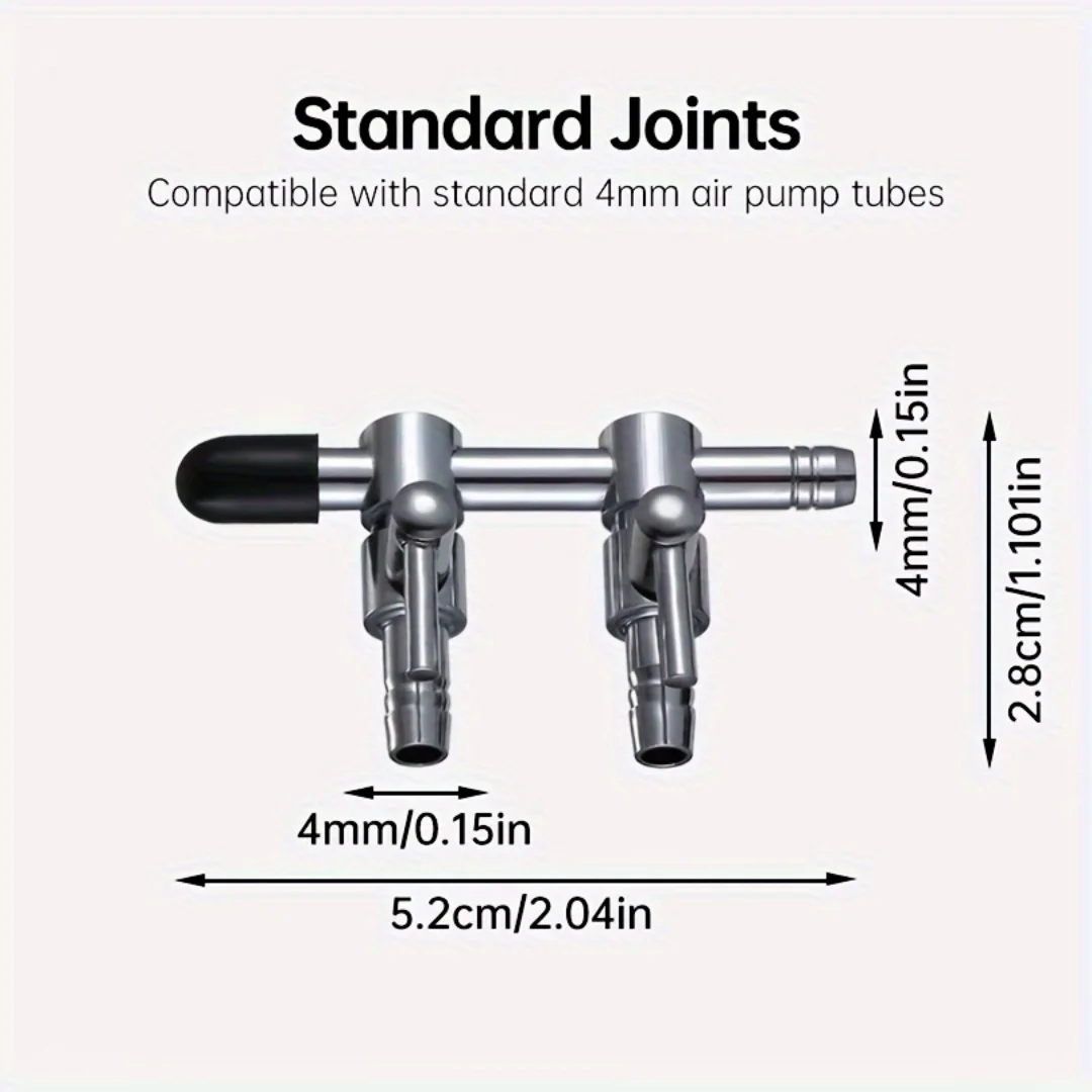 Optimize your aquarium’s aeration system with the Aquarium Air Flow Control Lever Valve Distributor Splitter. Designed for use with oxygen pumps, this stainless steel air valve allows you to split and regulate airflow from a single air pump to multiple outlets (1 to 4).